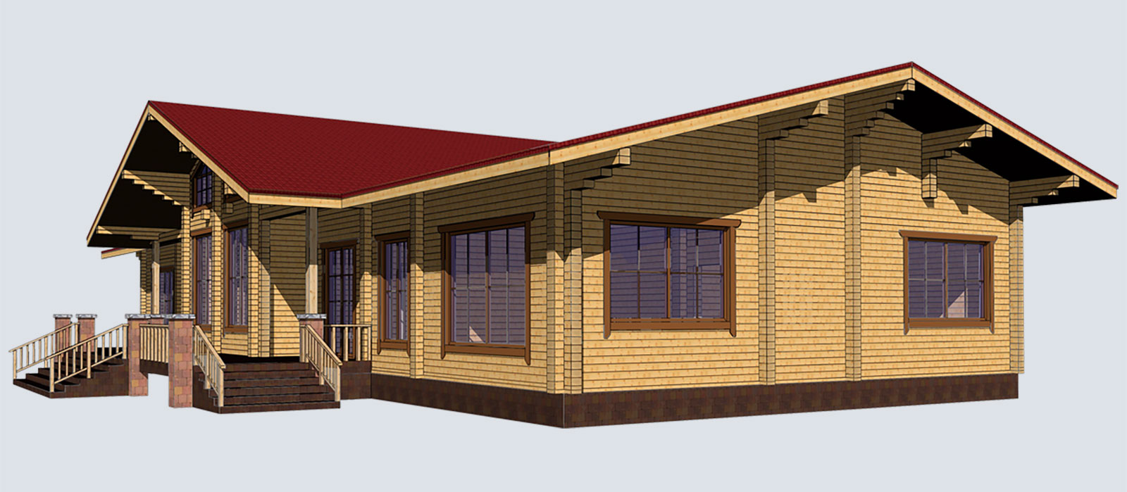 Дом из клееного бруса по проекту БД-23.1-12 «Каштан» - это огромный одноэтажный проект, который позволит разместиться большой дружной семье.