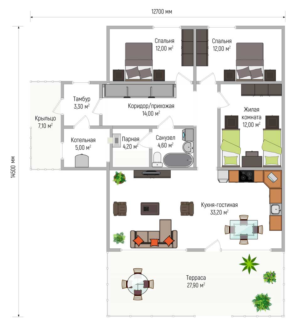 терраса 27,90 м2 и крыльцо 7,10 м2