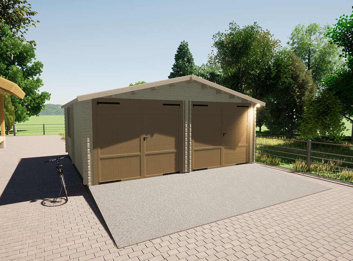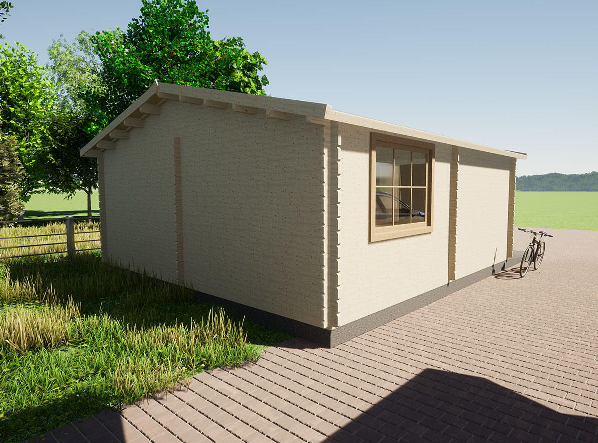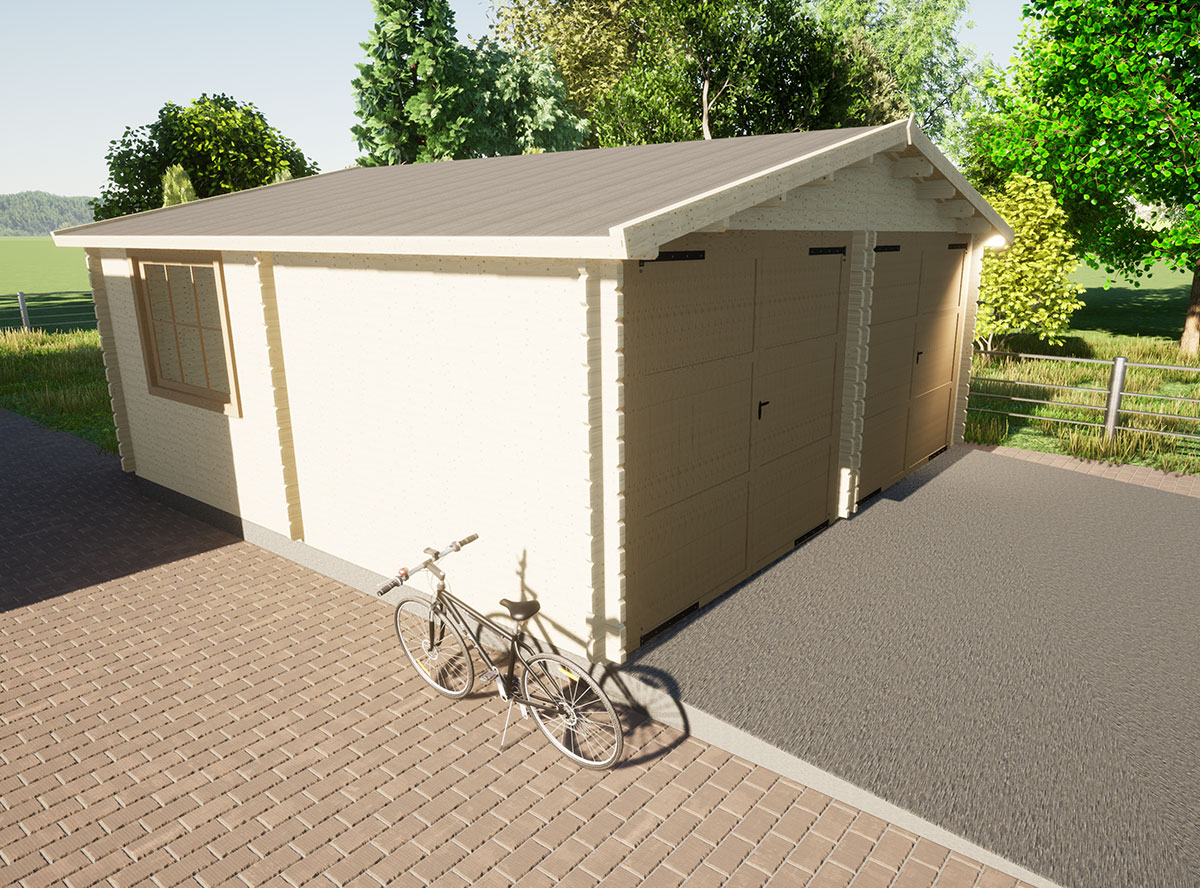 Гараж по проекту БД-86.1-18 "Garage 6×6 mun-3" предназначен для размещения двух автомобилей. Материалом изготовления является клееный брус.