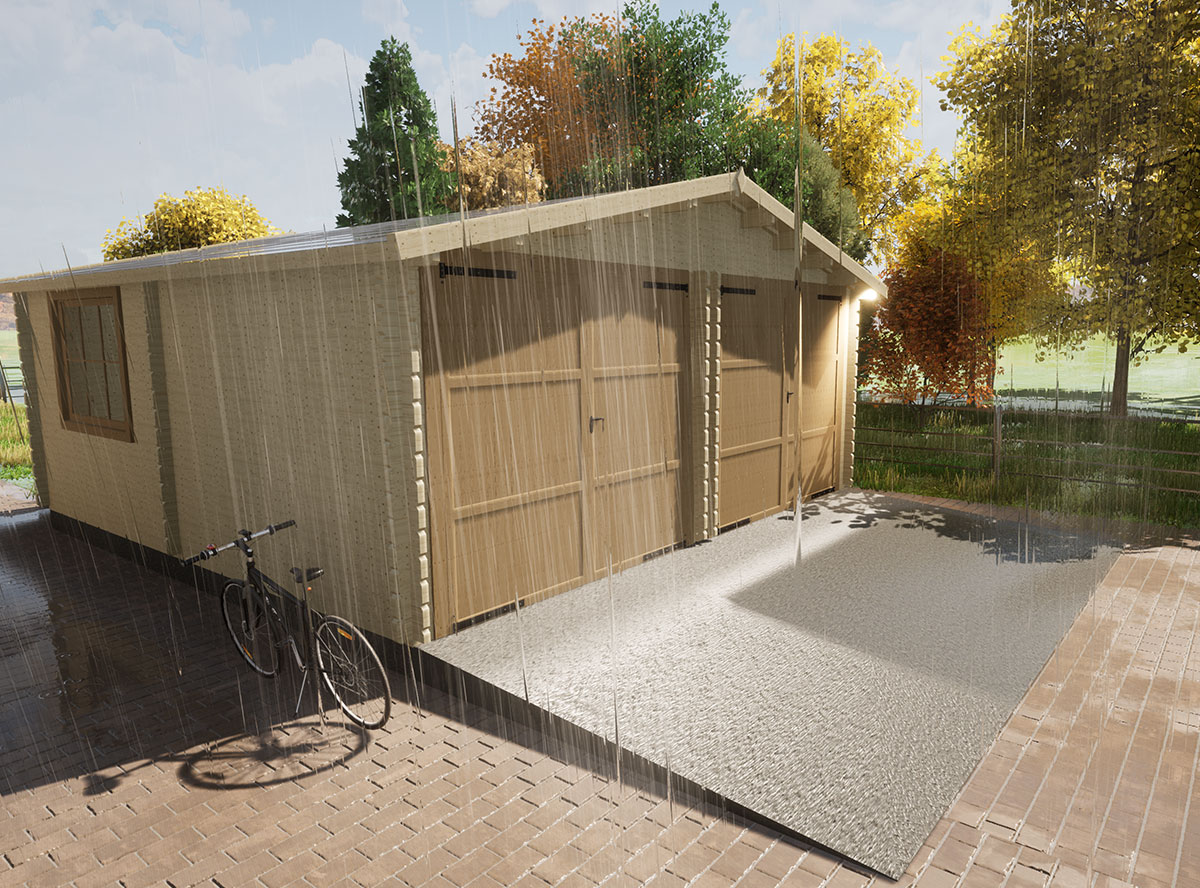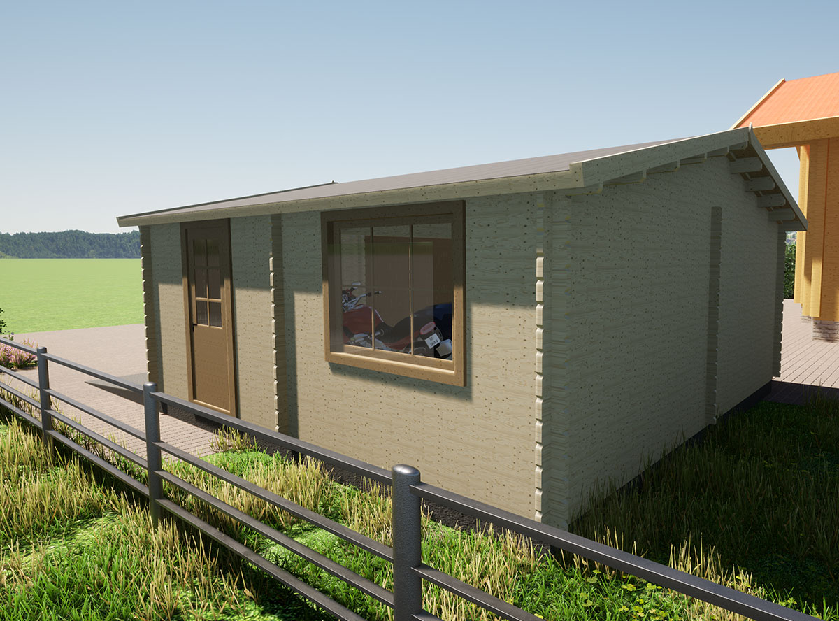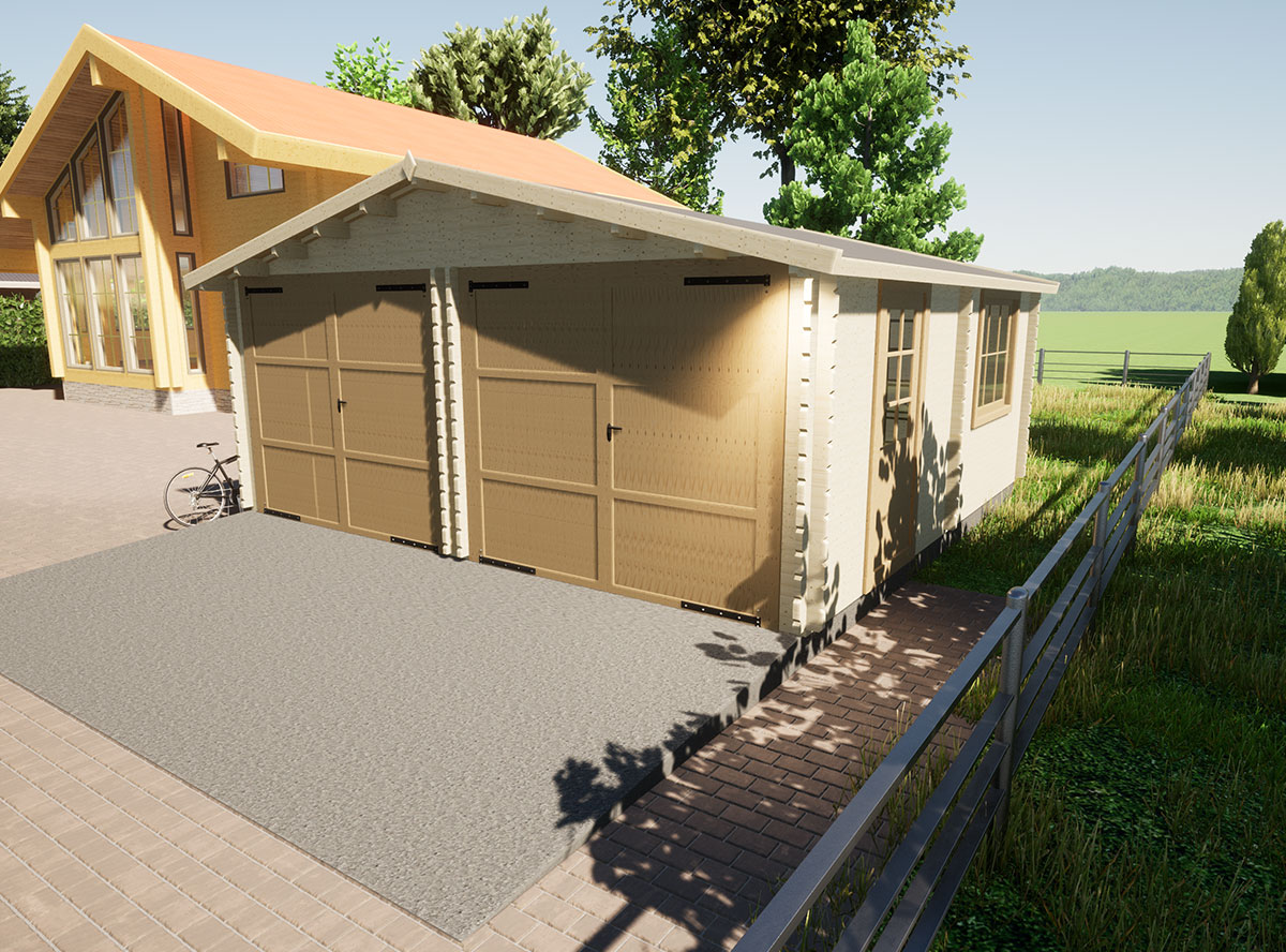 Гараж по проекту БД-86.1-18 "Garage 6×6 mun-3" предназначен для размещения двух автомобилей. Материалом изготовления является клееный брус.