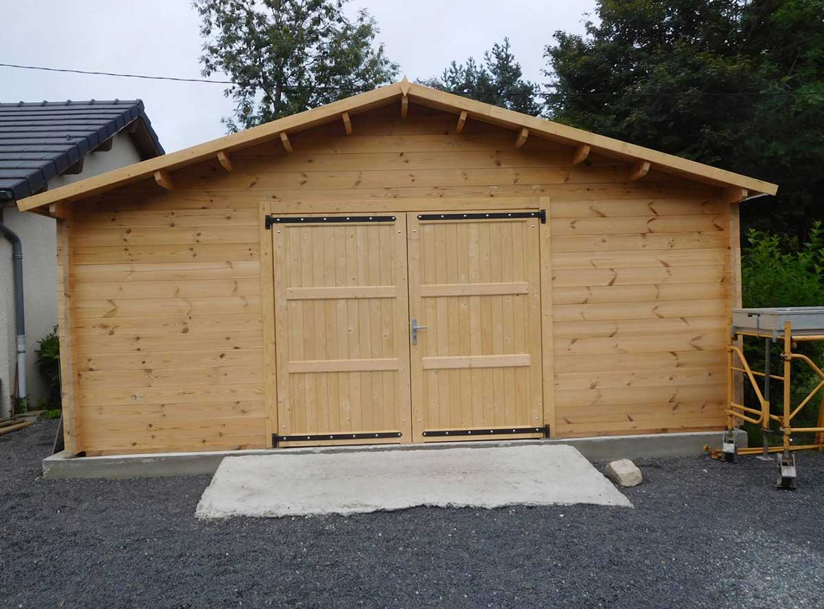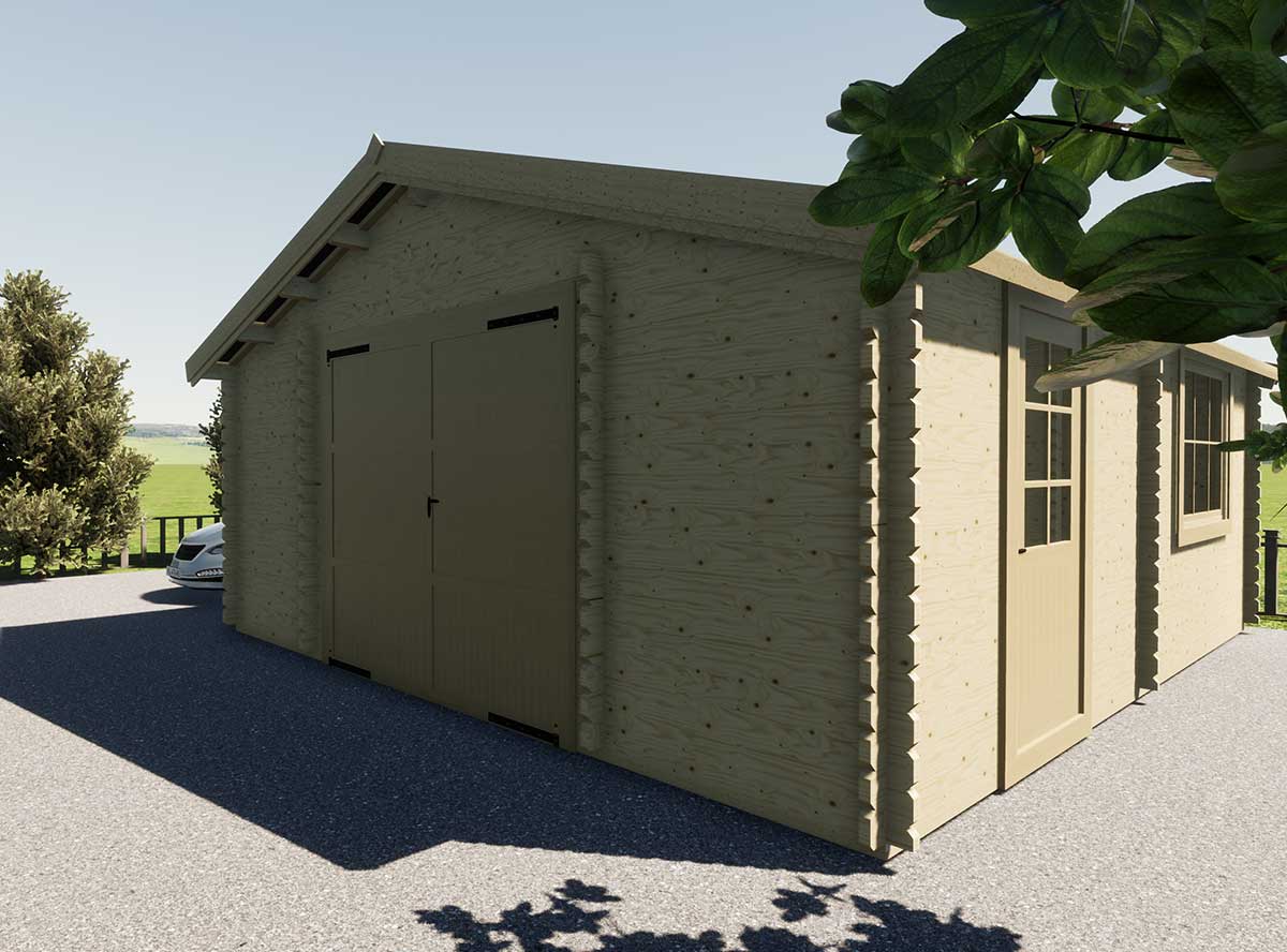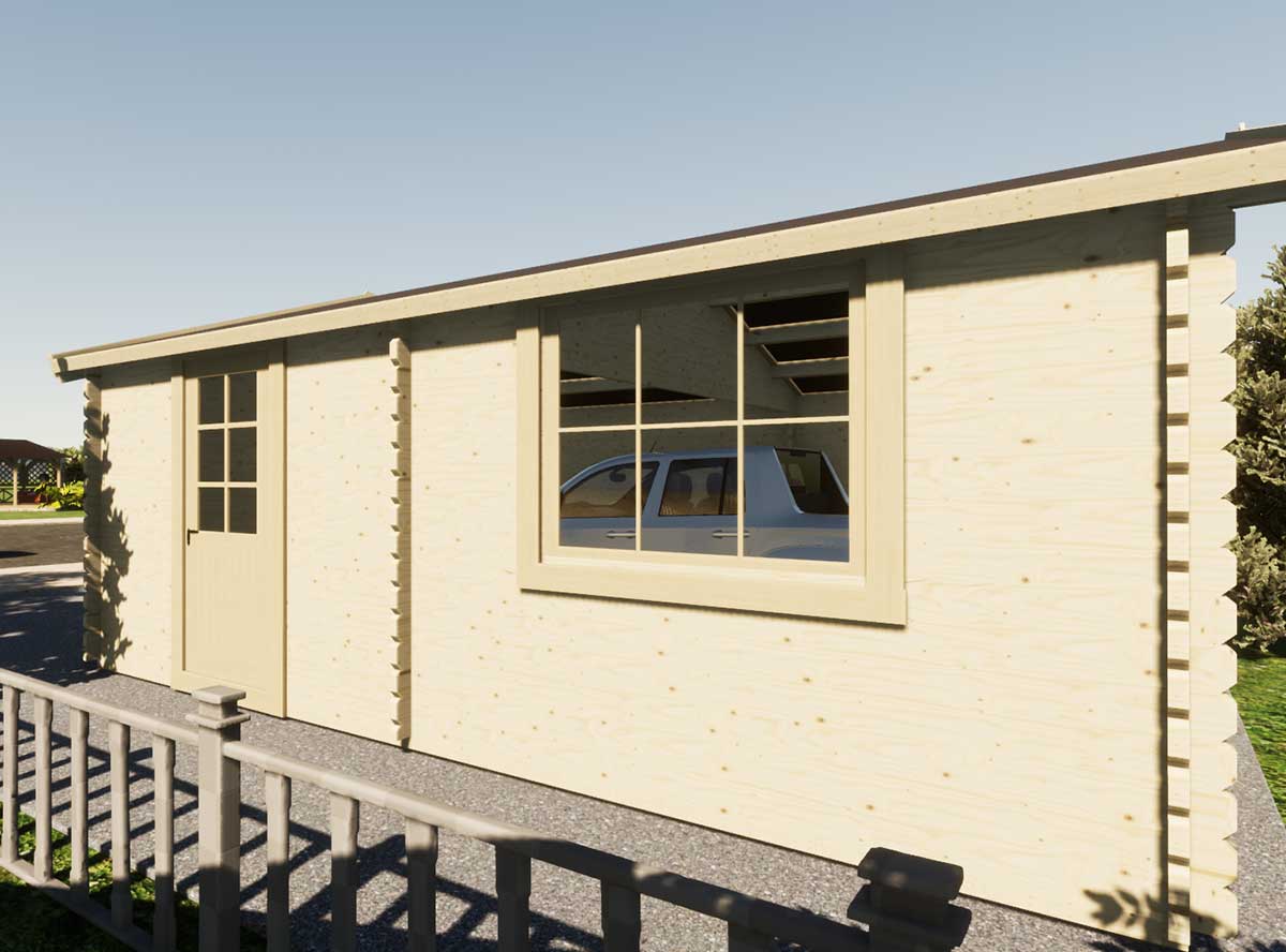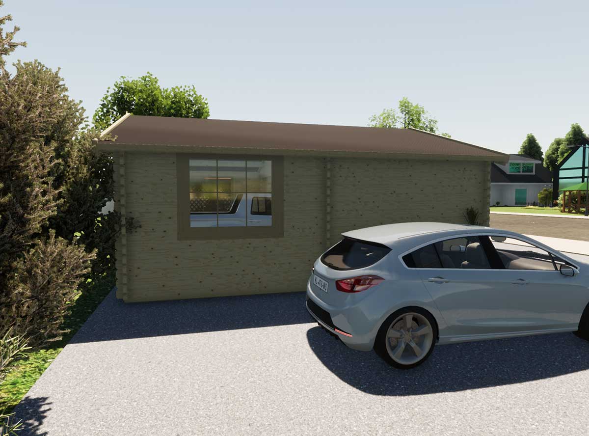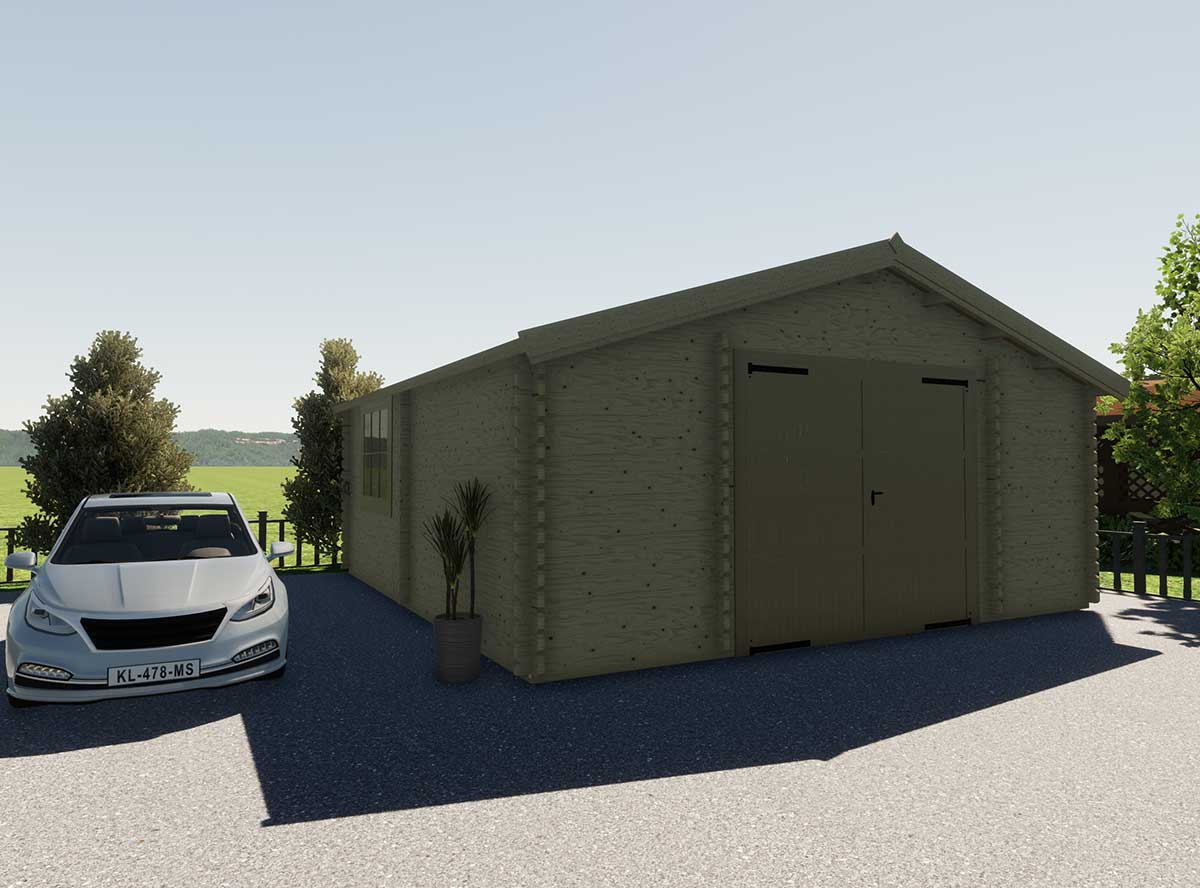 Гараж по проекту БД-97.1-19 "Garage-Single" изготавливается из клееного бруса.