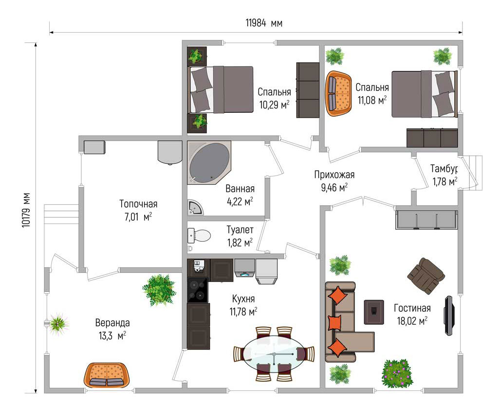 - В стоимость не входит: комплекты окон и дверей, кровельное покрытие