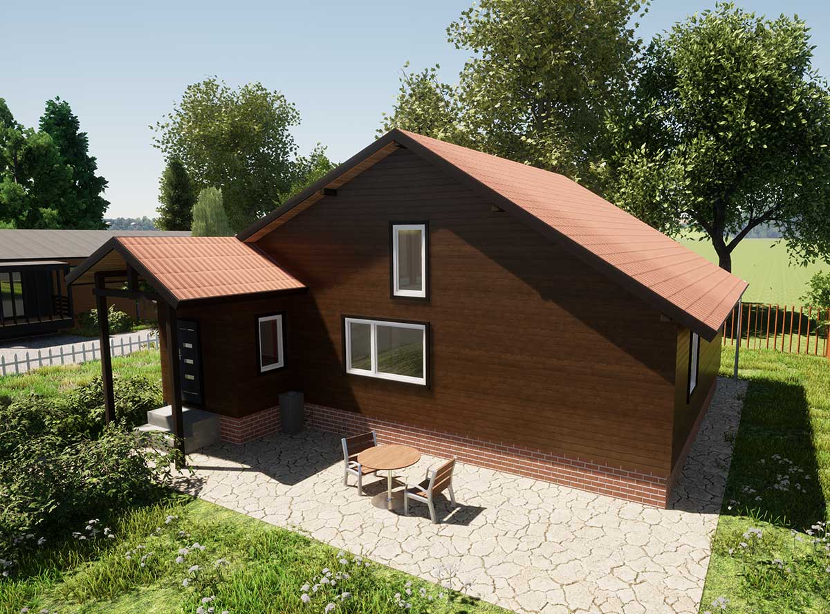 Каркасно-панельный дом по проекту КД-03.01-11 «Кочанов» - это современный коттедж, который сочетает в себе качество заводского изготовления, надежность, долговечность, энергоэффективность и экологичность.