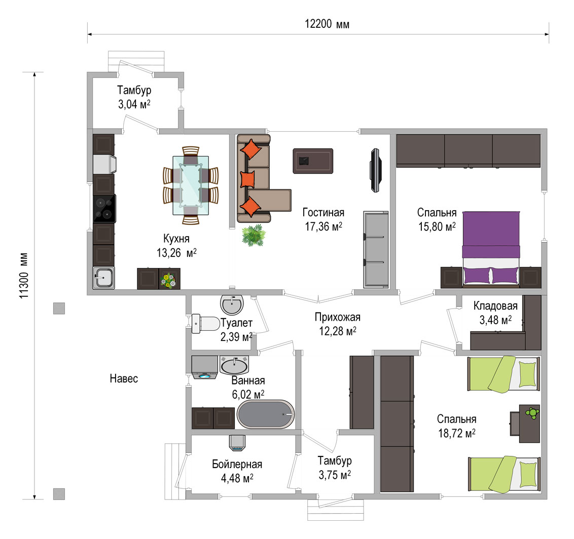 - В стоимость не входит: комплекты окон и дверей, кровельное покрытие