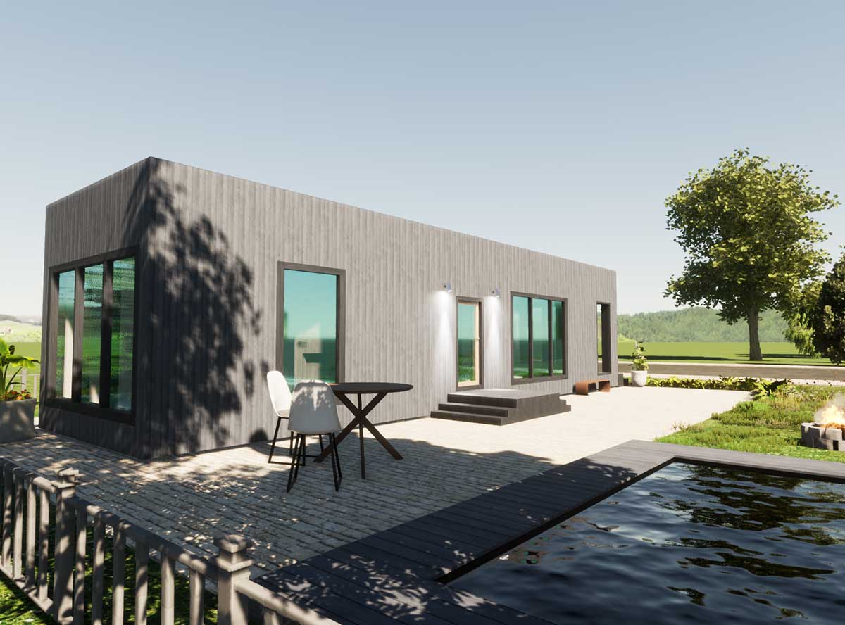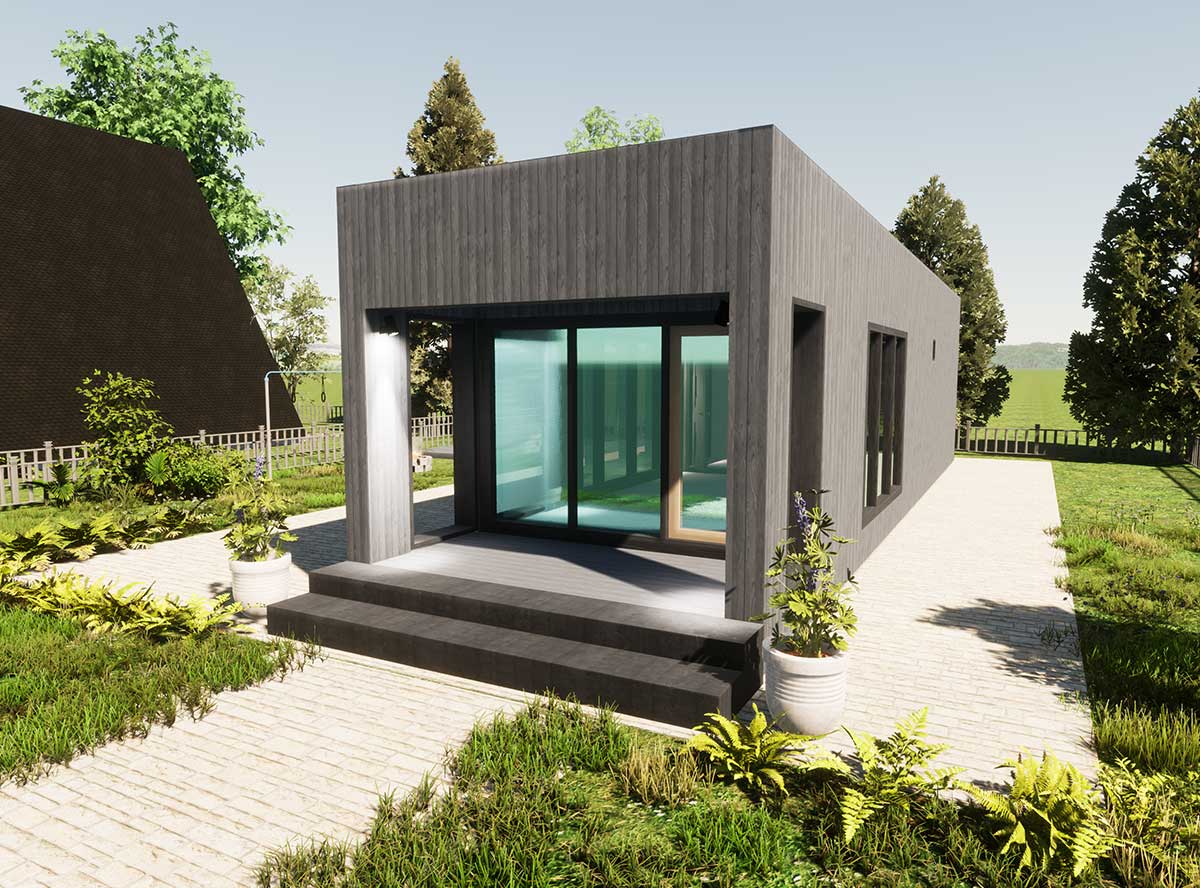 Панорамное остеклении придает дому стильный экстерьер.
