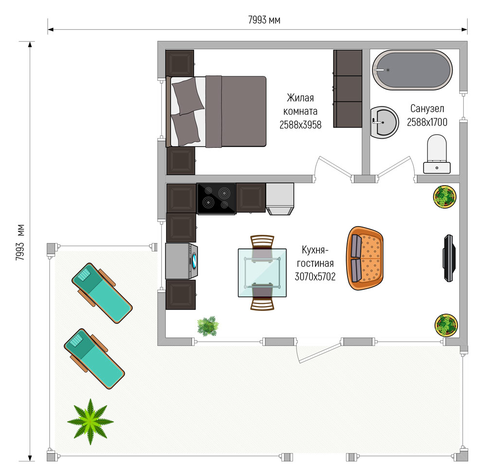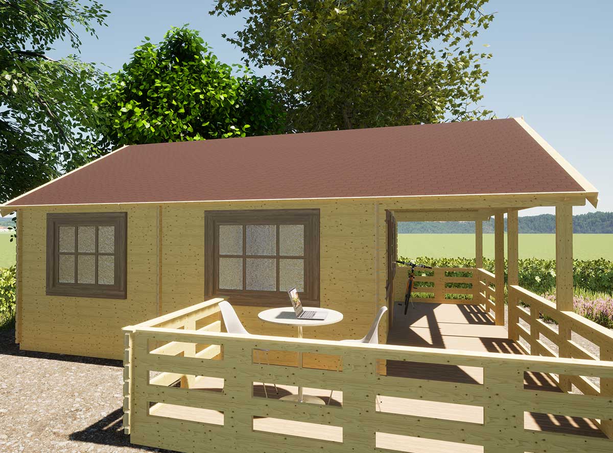 Летний дом по проекту БД-172.1-23 "Angers-comfort" - это улучшенная версия проекта БД-125.1-20 "Angers-NEW" с санузлом вместо дополнительной жилой комнаты.