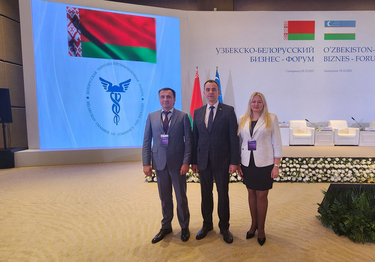 С 4 по 6 декабря делегация деловых кругов Республики Беларусь принимает участие в Узбекско-Белорусском бизнес-форуме в городе Самарканд (Узбекистан). Более 60 предприятий из Беларуси и около 200 из Узбекистана объединит бизнес-форум. Представители нашего предприятия – начальник управления по реализации, строительству домов и малых архитектурных форм Алла Петровна Кузьменкова и заместитель директора по коммерческим вопросам Юрий Иванович Шлямнев