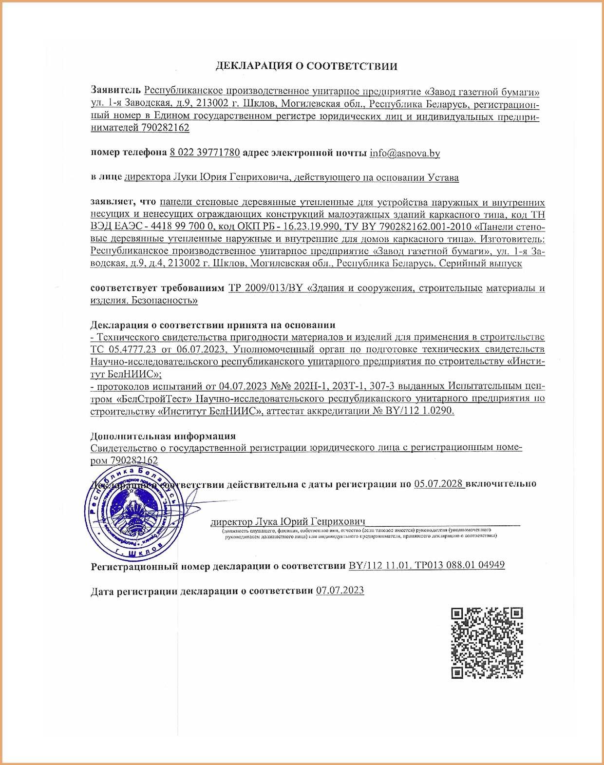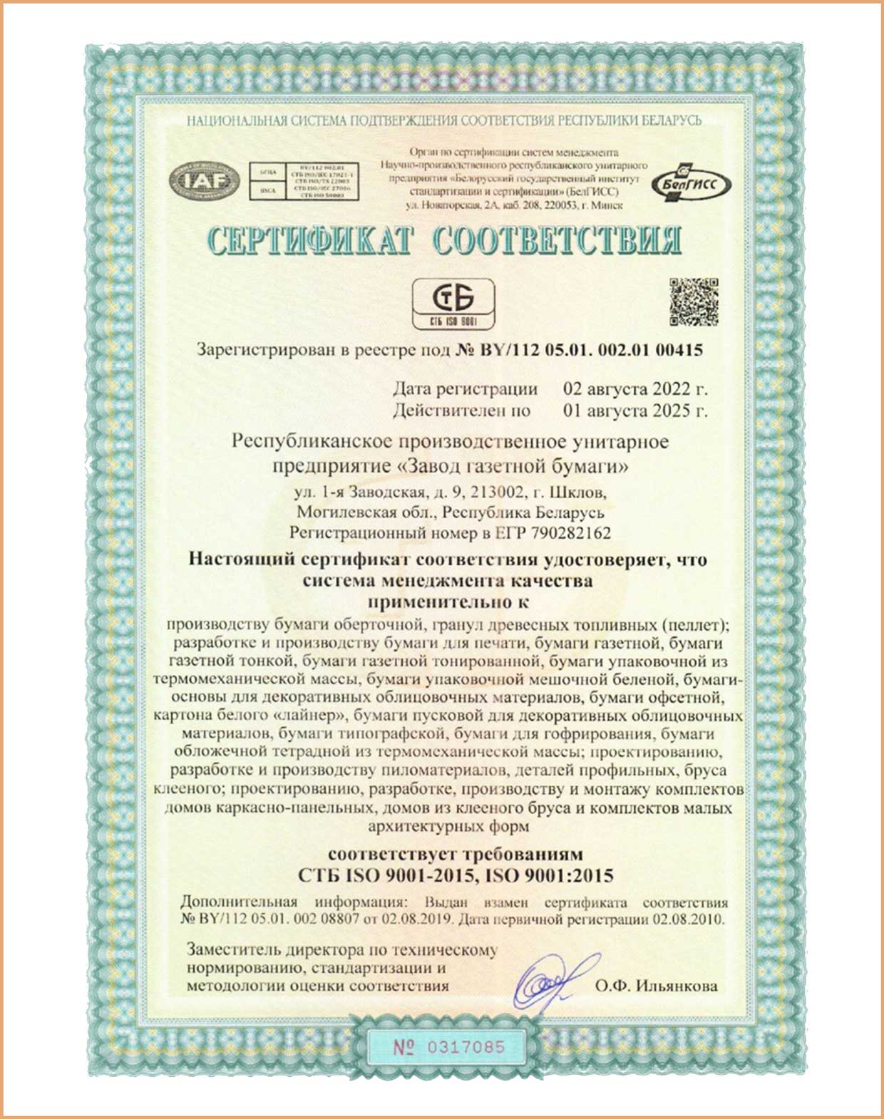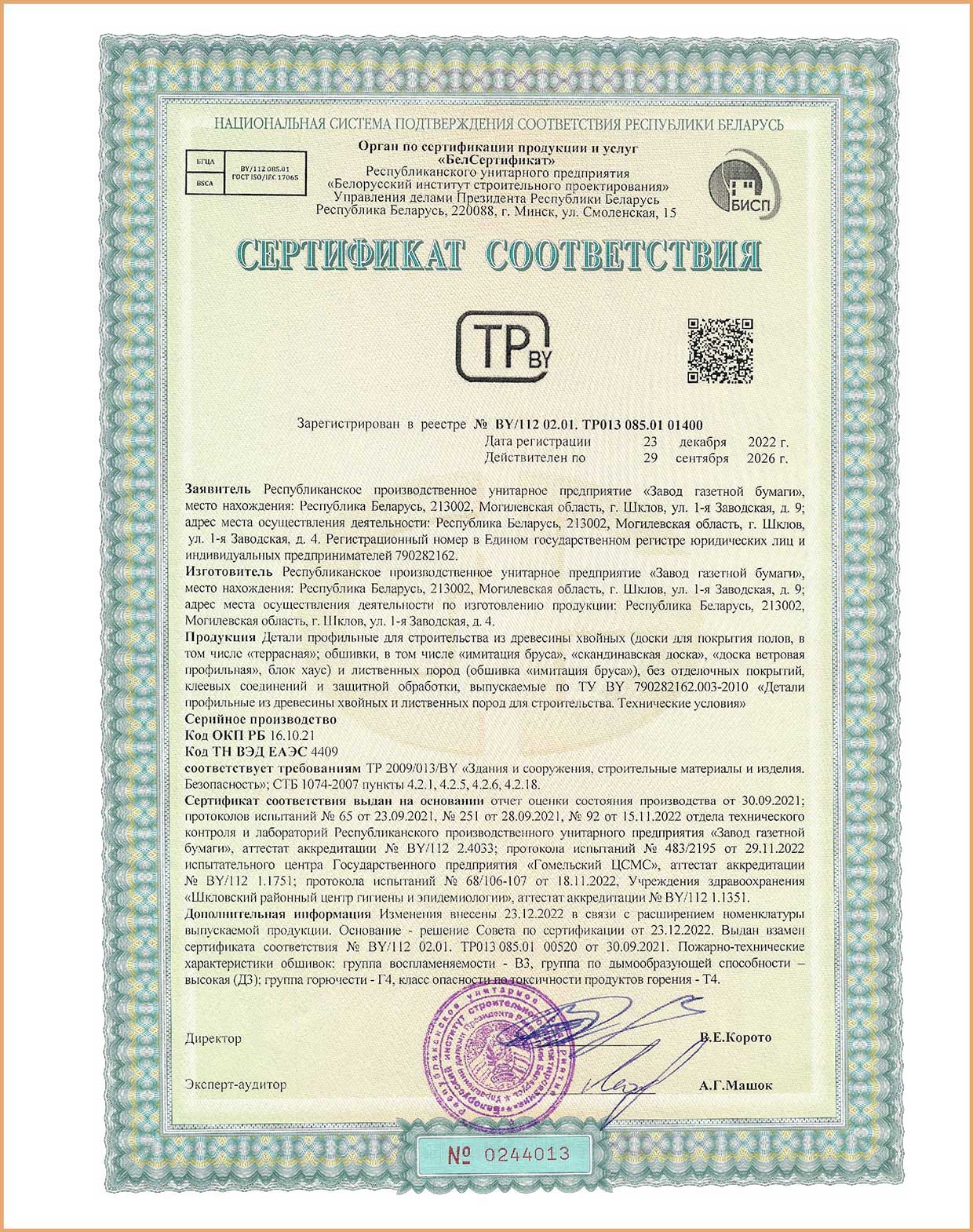 Производство продукции и ее качество соответствуют требованиям международных и национальных стандартов, что подтверждается сертификатами и декларациями соответствия
