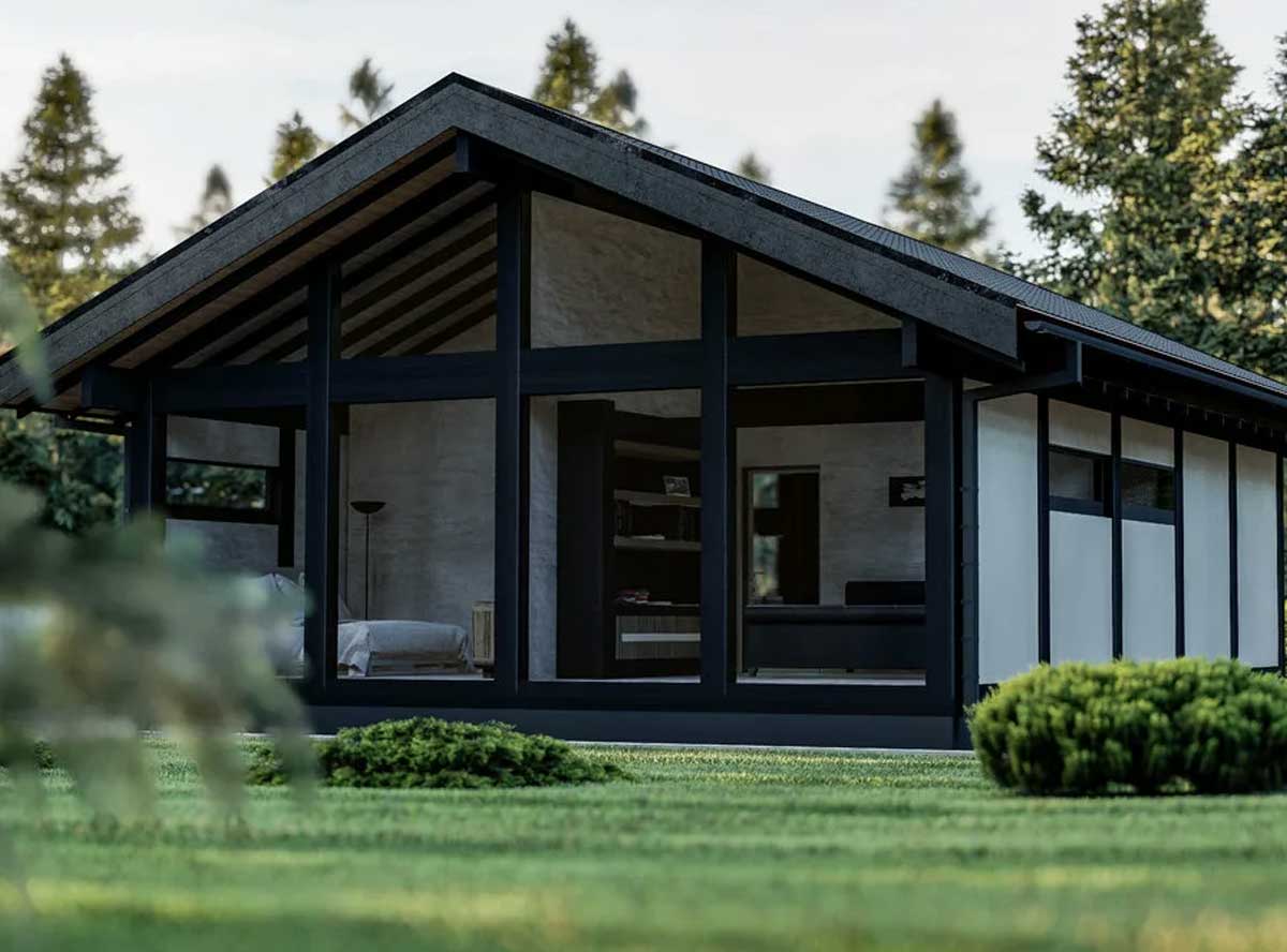 Современные проекты фахверкового дома предполагают использование панорамных окон.